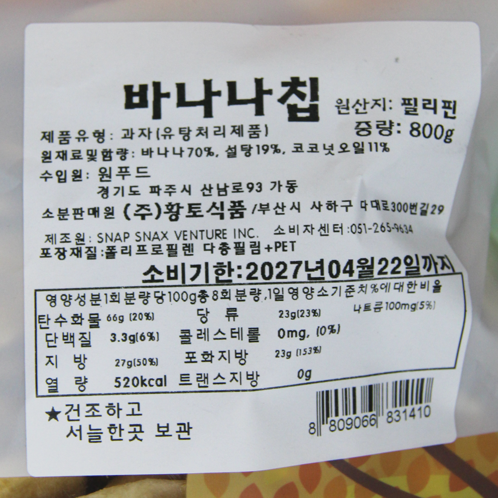 | 제품명 | 바나나칩 800g /황토식품 |