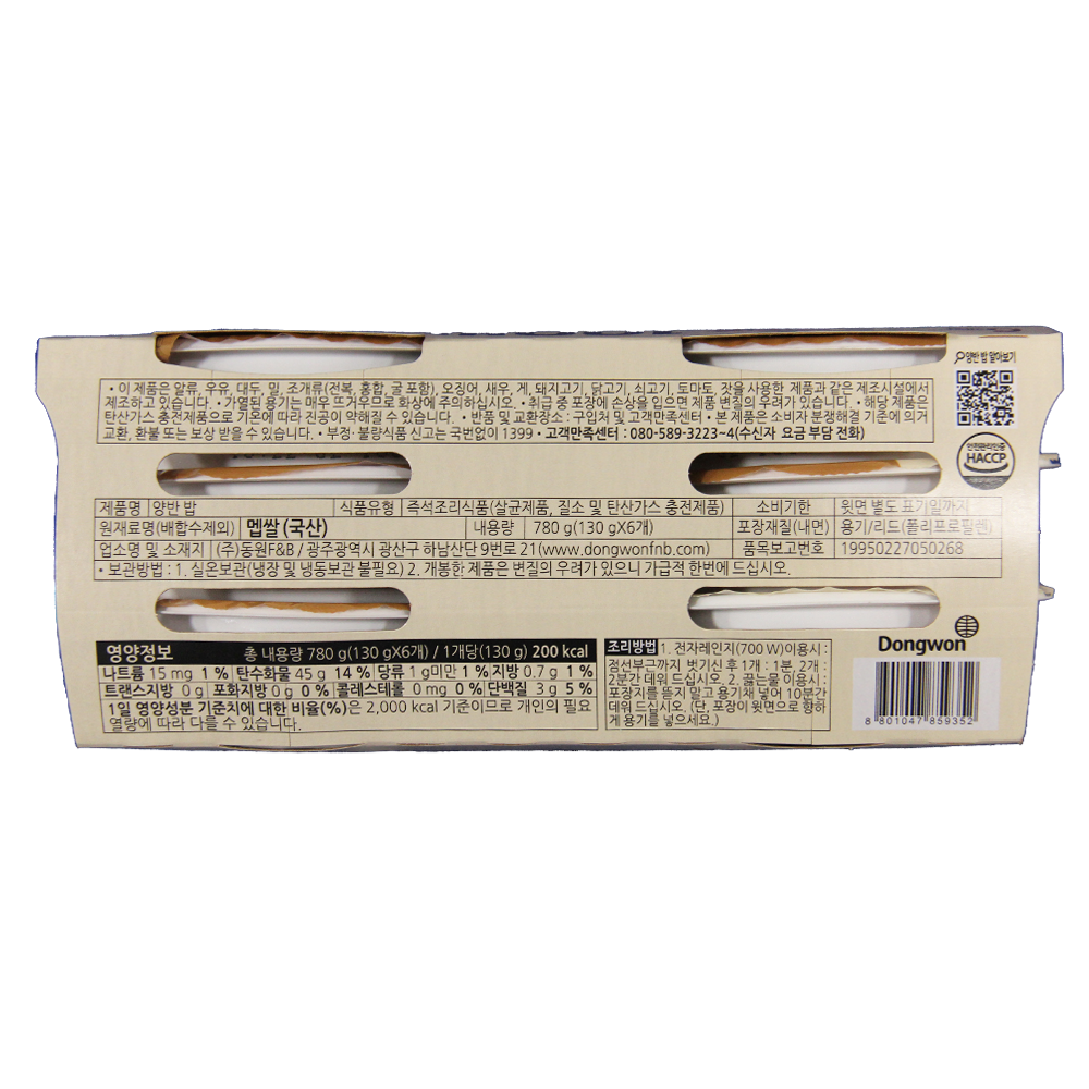 | 제품명 | 동원 양반 찰진밥 130g*6입 /동원F&B |