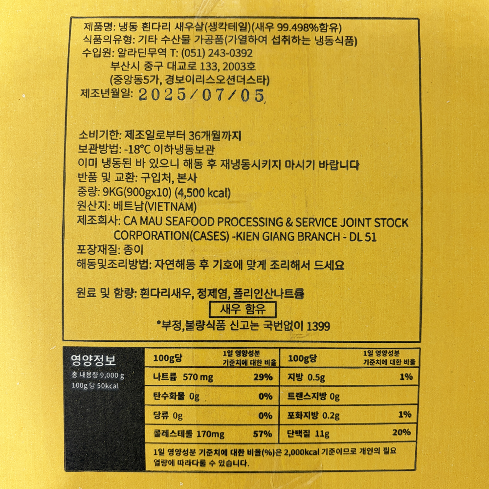 | 품목 또는 명칭 | Five Star 생칵테일새우 900g (31-40)/베트남산 |