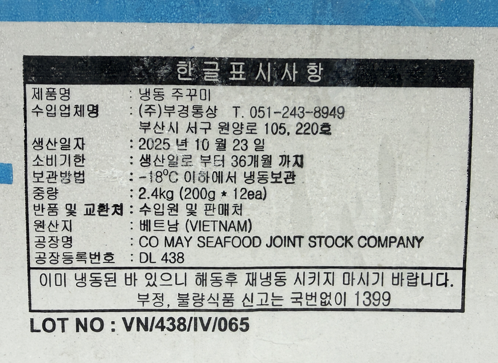| 품목 또는 명칭 | 정성모은 쭈꾸미 10미 (30/50) 200g/부경통상 |
