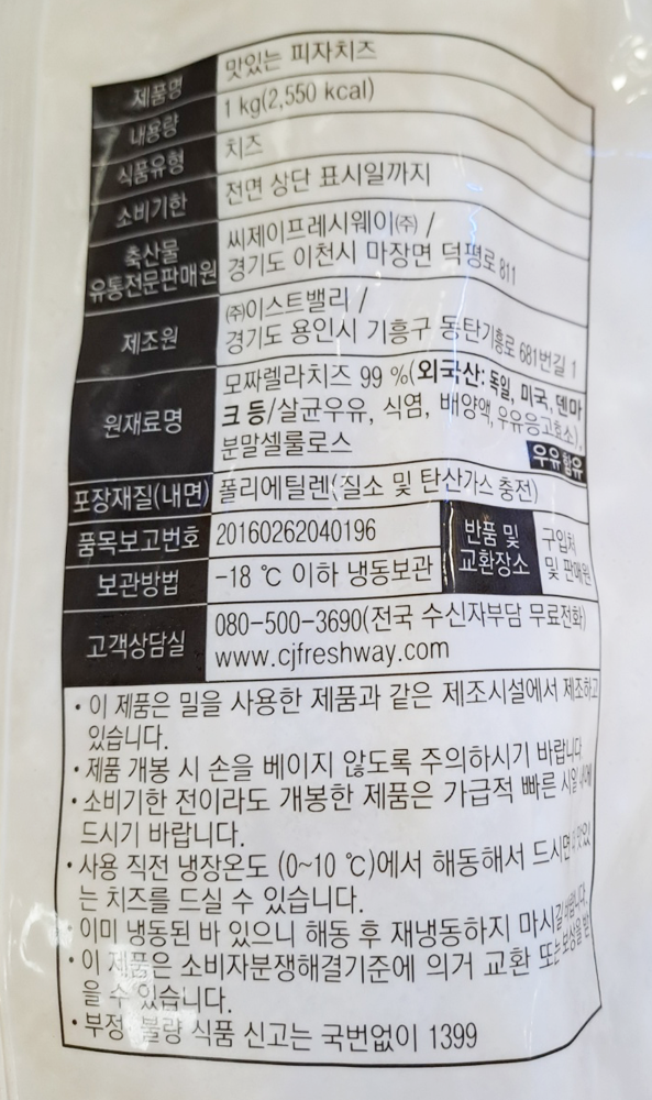 | 제품명 | 굿딜 맛있는 피자치즈 (99%) 1kg/CJ |