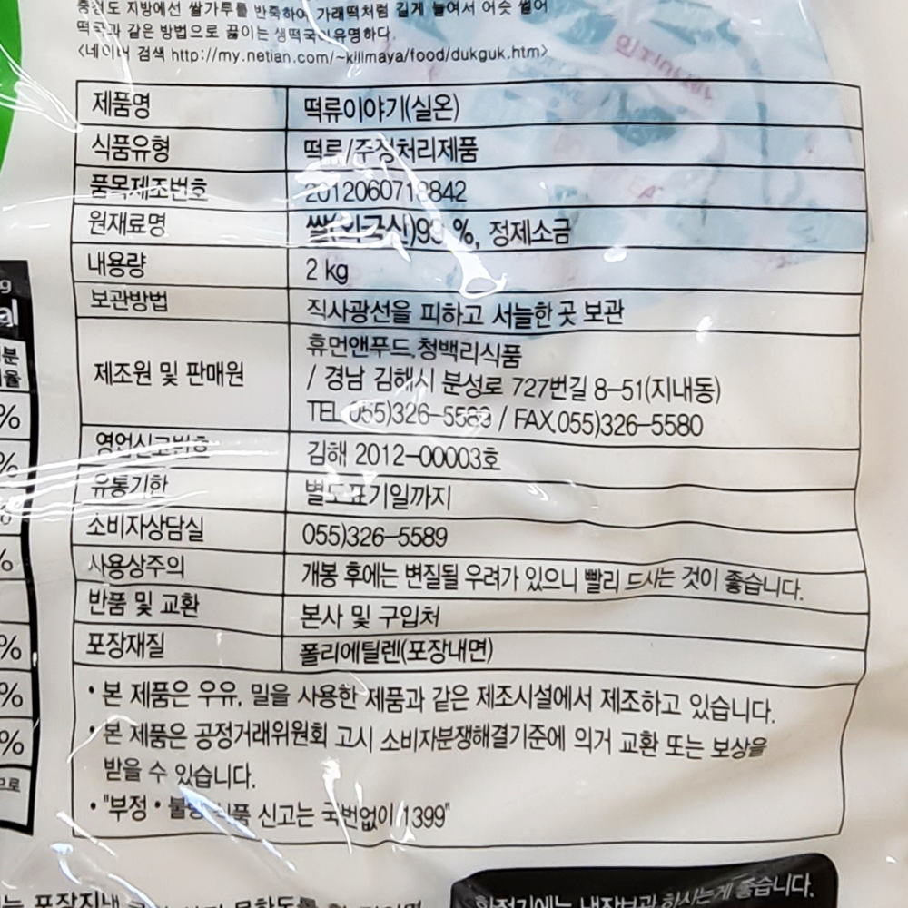 | 제품명 | 참떡볶이떡 2kg (경사썰기)/휴먼앤푸드 |