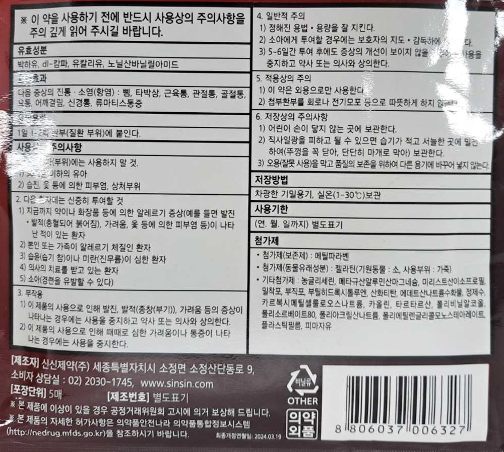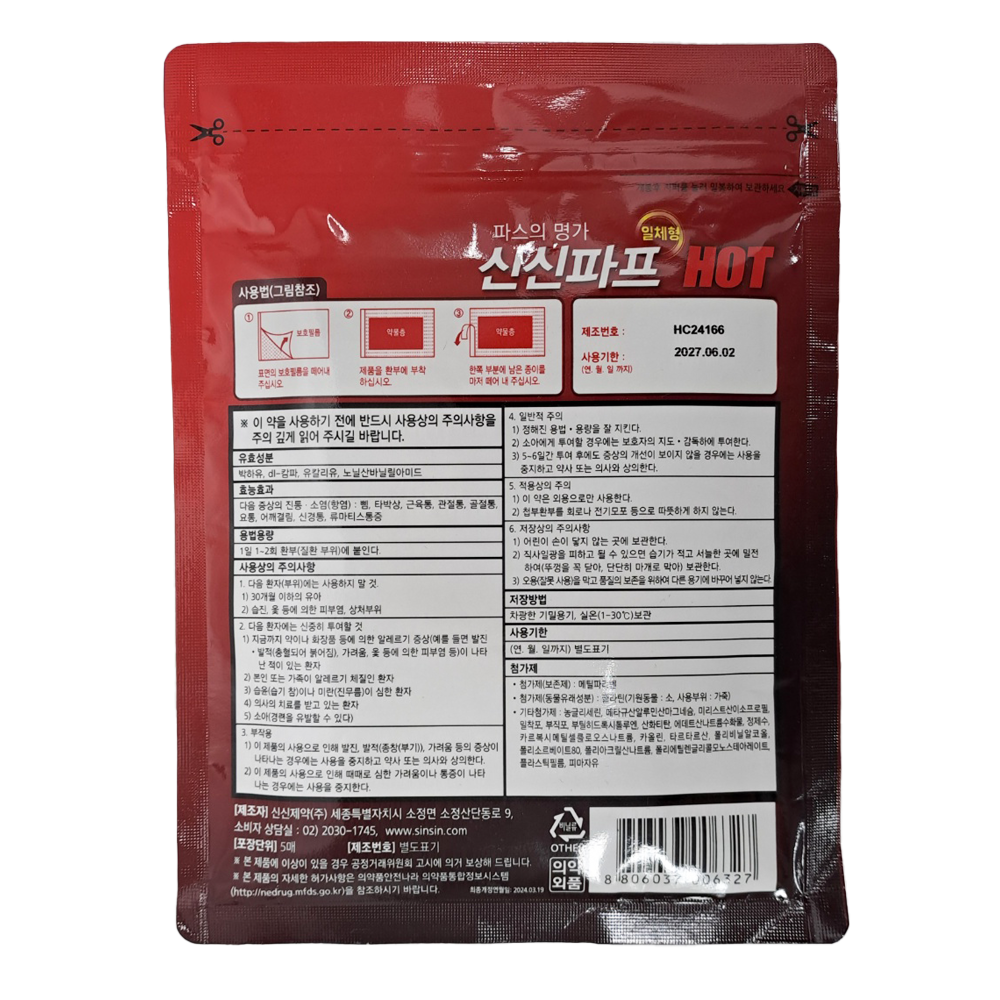 | 제품명 | 신신파프 HOT(대) 5매 /신신제약 |