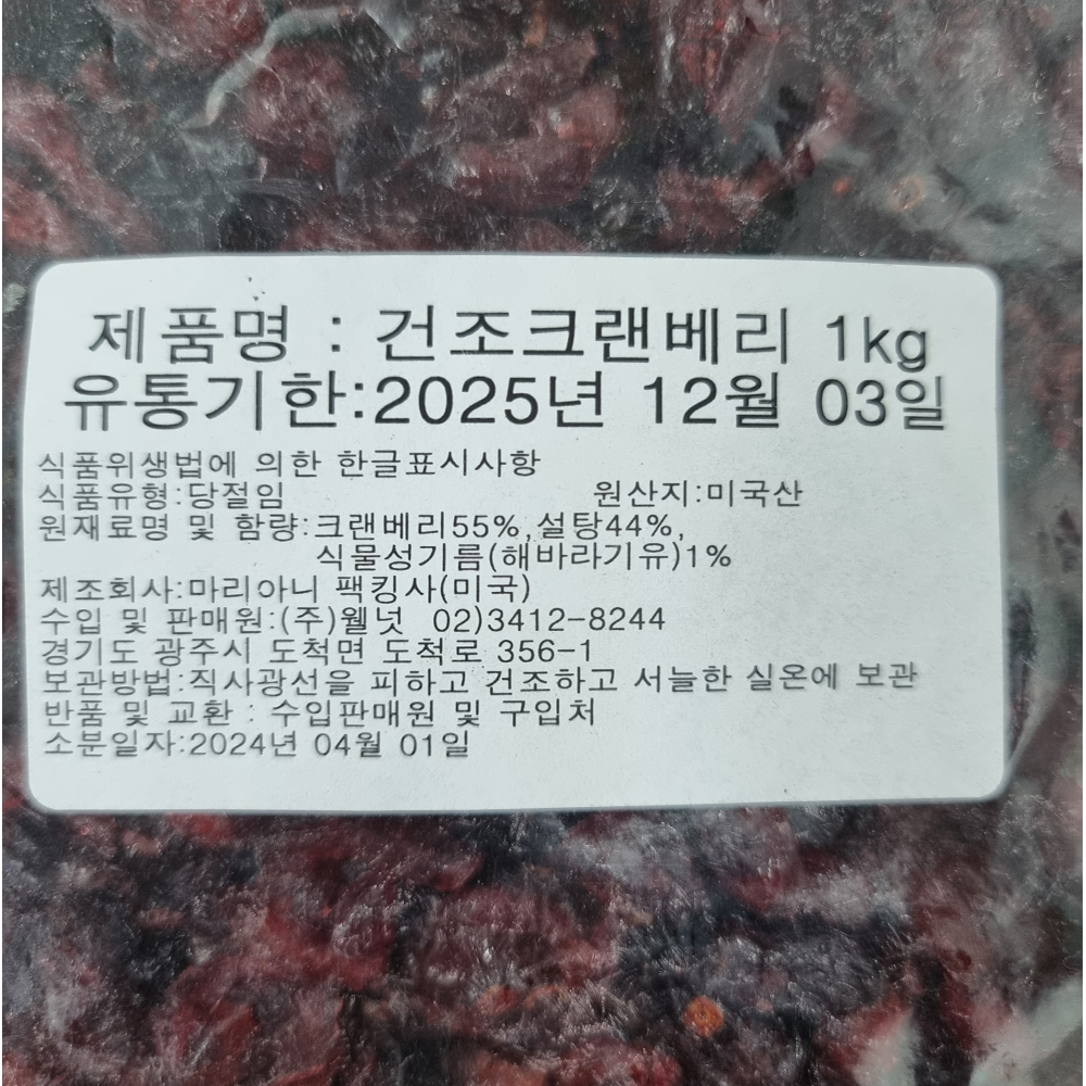 | 제품명 | 건조 크랜베리 1kg/성신 |