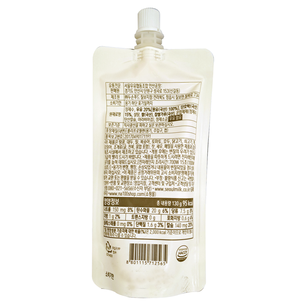 | 제품명 | 서울) 단호박 우유죽 130g |