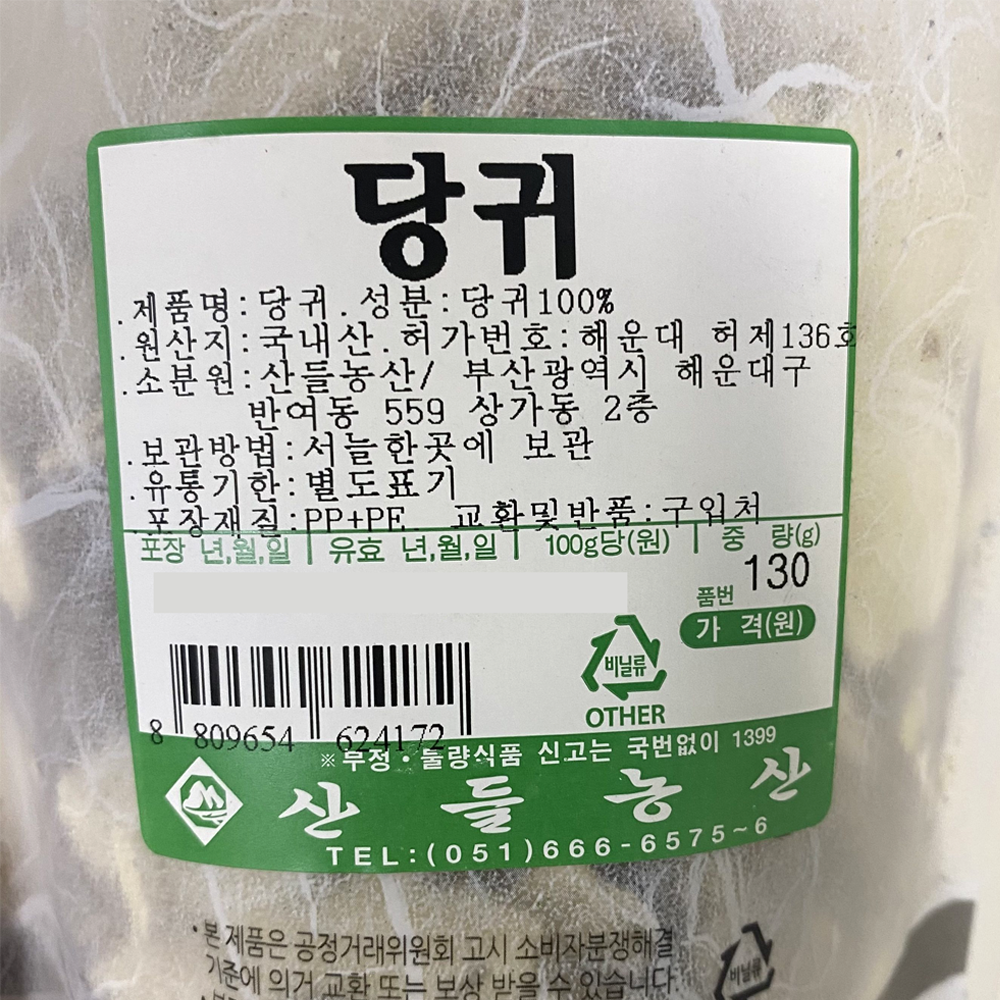 | 품목 또는 명칭 | 당귀·130g(국내산)/산들농산 |
