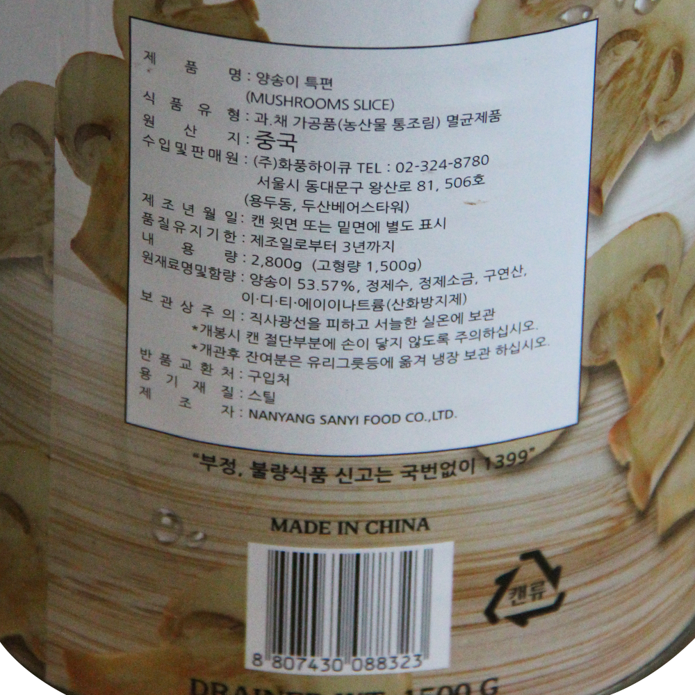| 제품명 | 양송이 특편 2.84kg(SLICE)/화풍 |