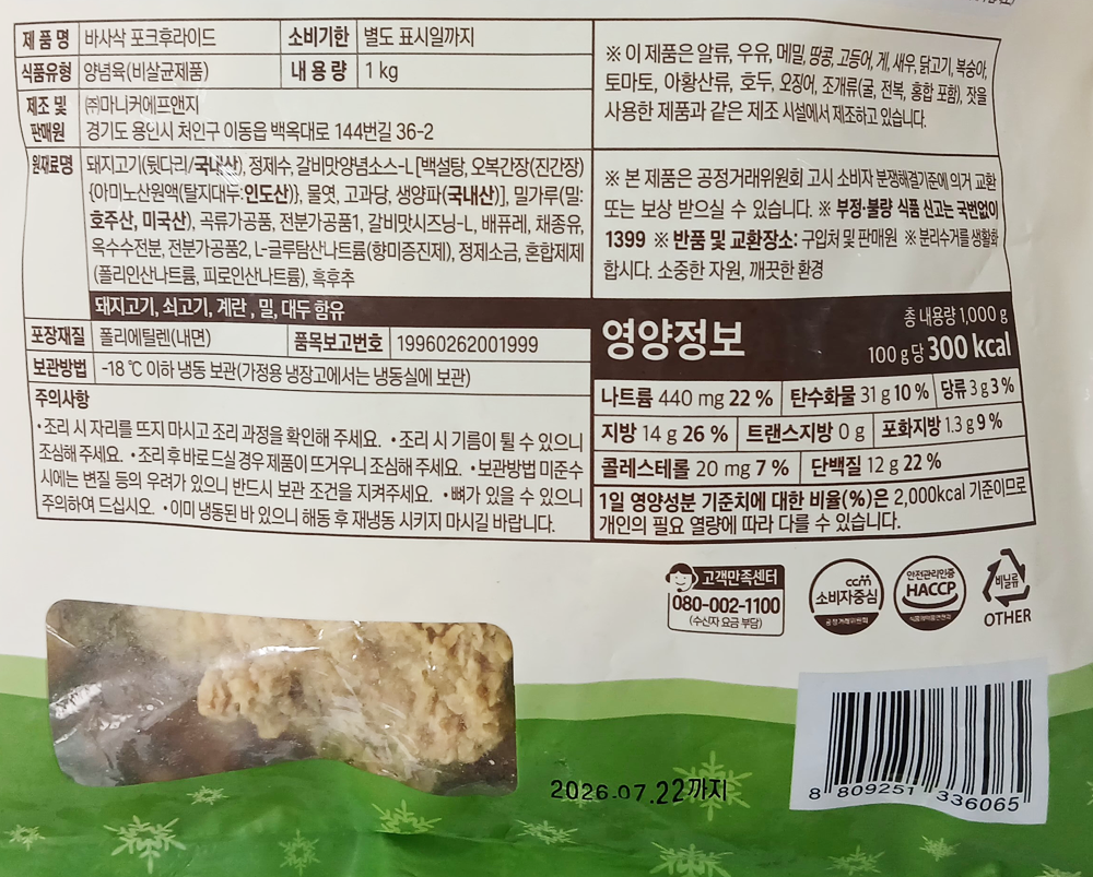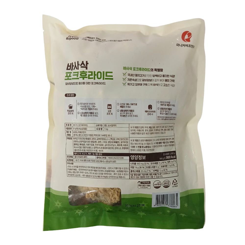 | 제품명 | 바사삭 포크후라이드 1kg/마니커 |