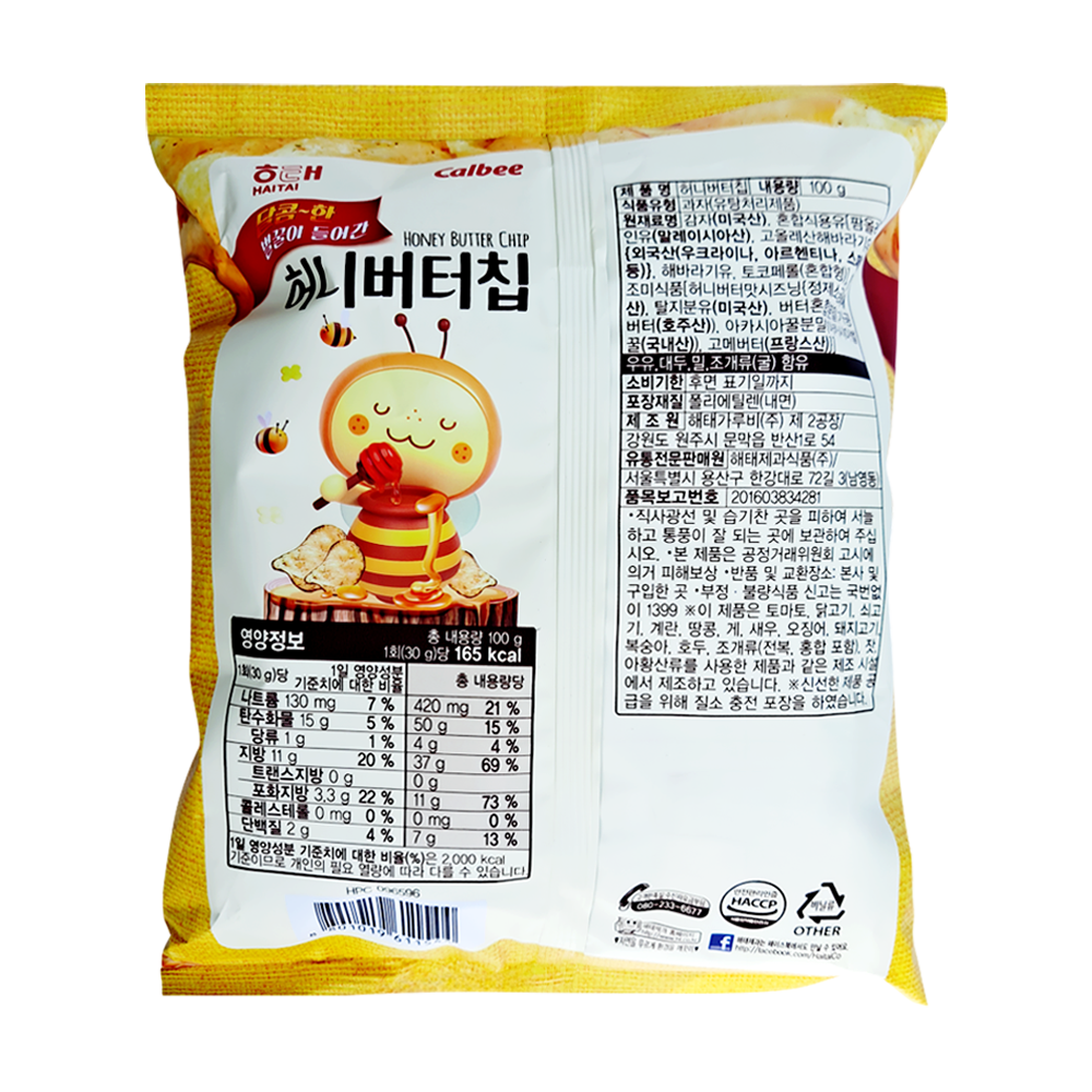 | 제품명 | 허니버터칩 100g/해태제과 |