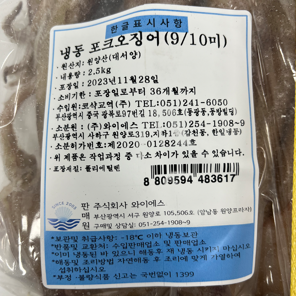 | 품목 또는 명칭 | 냉동 포크오징어 2.5kg (9-10미)/원양산 |