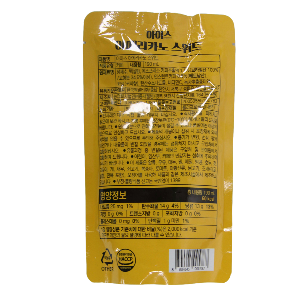 | 제품명 | 맥널티 아이스아메리카노 스위트 190ml/한국맥널티 |
