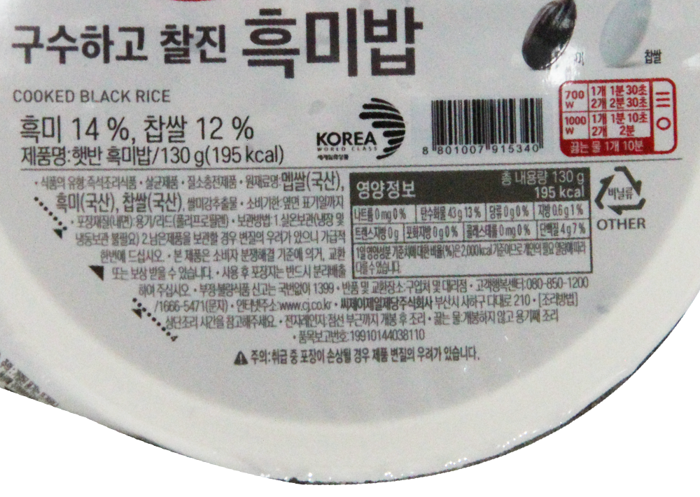 | 제품명 | 햇반 흑미밥 130g /CJ |