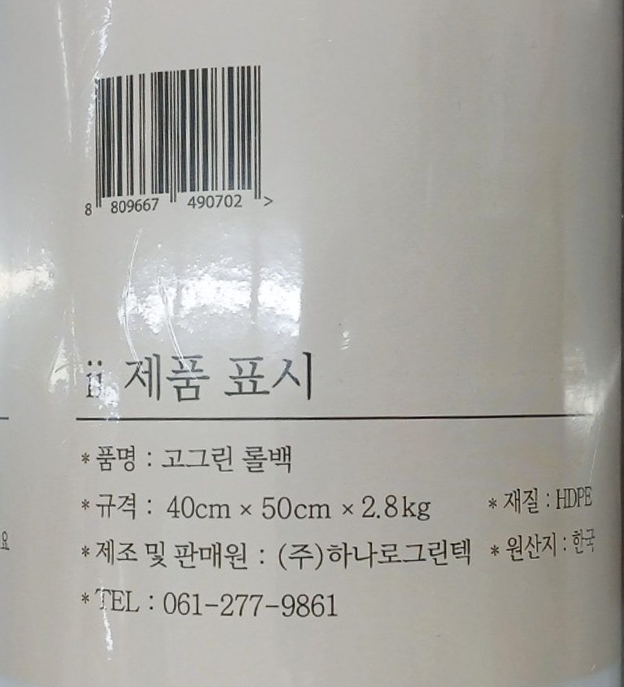 | 제품명 | 고그린 식자재용 중량롤백 2.8kg/하나로그린텍 |