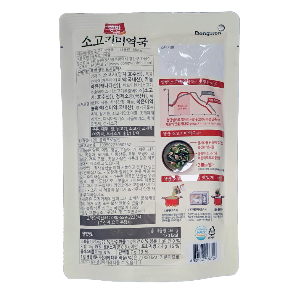 | 제품명 | 양반 소고기 미역국 460g /동원F&B |