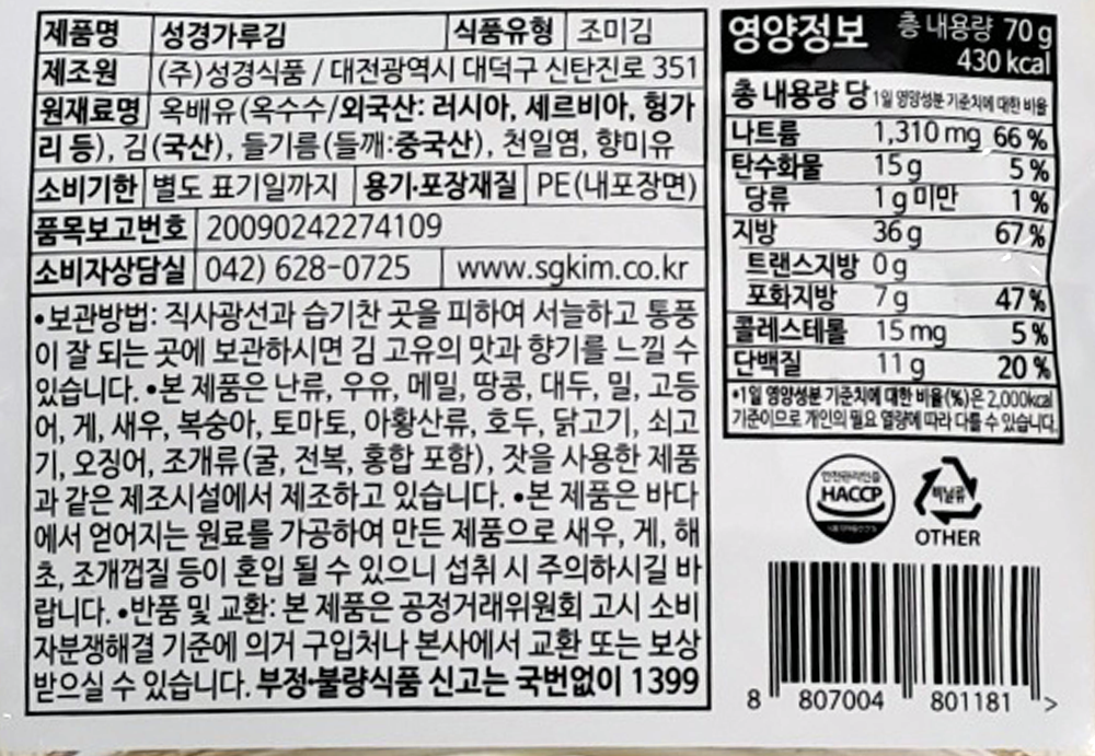 | 제품명 | 지도표 성경 가루김(조미김) 70g /성경식품 |