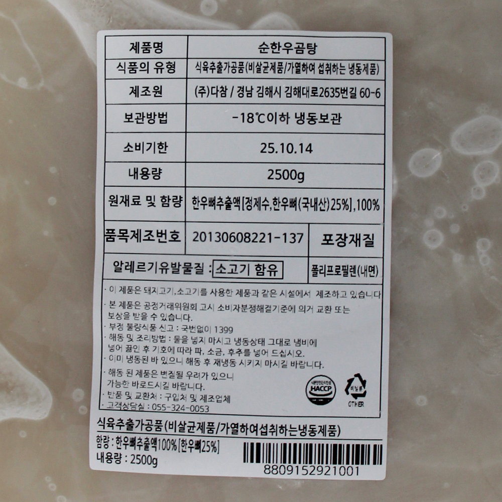 | 제품명 | 순한우곰탕 2.5kg/부경식품 |