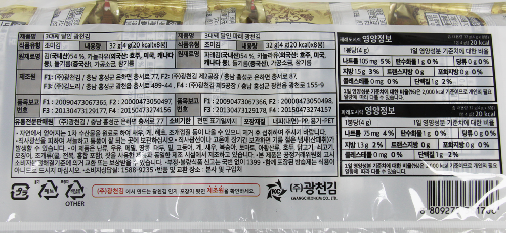 | 제품명 | 3대째 달인 광천김 (재래8+파래8) /광천김 |