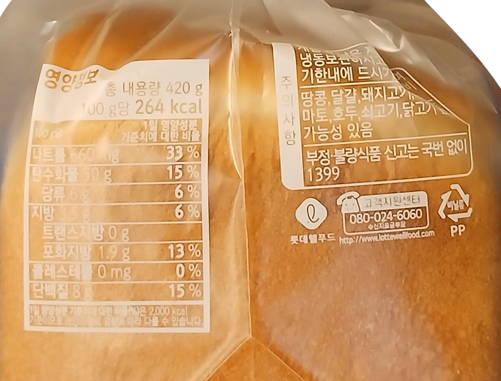 | 제품명 | 기린) 촉촉식빵 420g/롯데제과 |