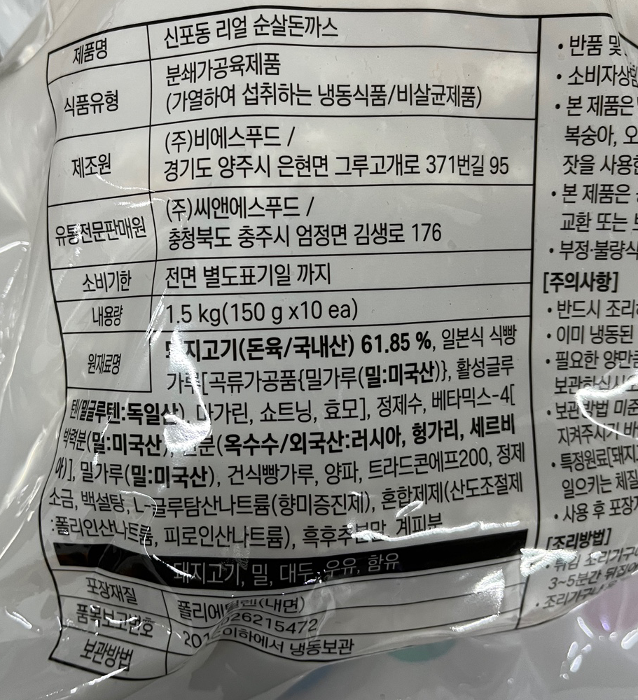 | 제품명 | 드림愛)신포동 리얼 순살돈까스 1.5kg/씨앤에스푸드 |