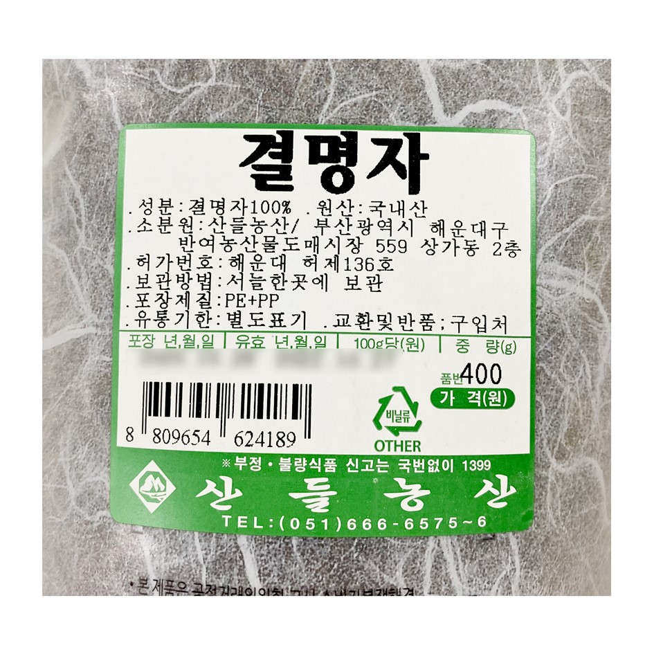 | 품목 또는 명칭 | 결명자·400g(국내산)/산들농산 |