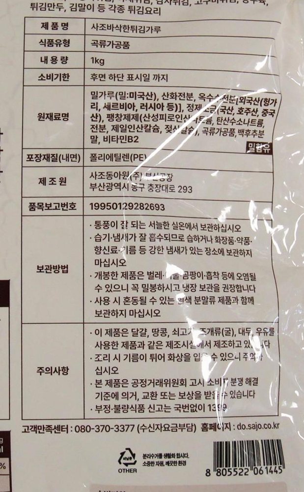 | 제품명 | 사조 튀김가루 1kg/사조동아원 |