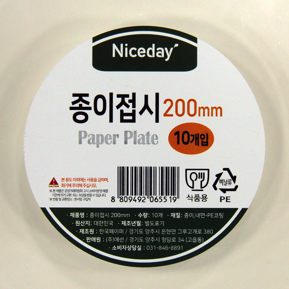 | 제품명 | Niceday) 종이접시 200mm /애런 |