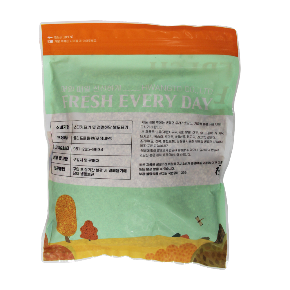| 생산자 및 소재지(수입품의 경우 생산자, 수입자 및 제조국) | 원산지 : 중국산 수입원 : (주)황토식품 소분원 : (주)황토식품 |