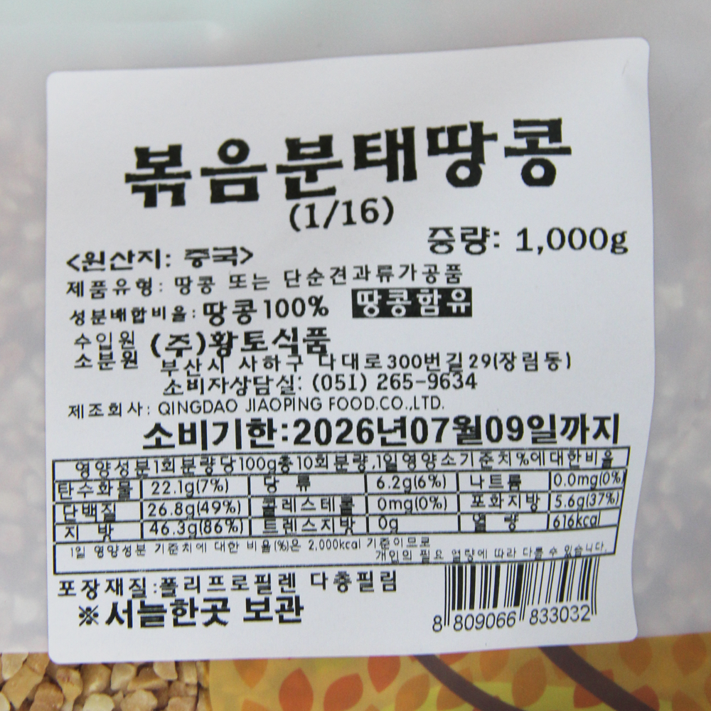 | 제품명 | 볶음 분태땅콩(1/16태) 1kg /황토식품 |