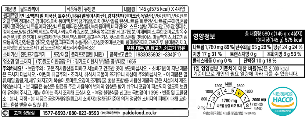 | 제품명 | 즉석 라볶이 4개입(580g) / 팔도 |