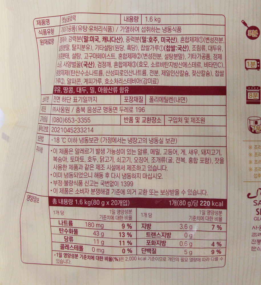 | 제품명 | 옛날꿀호떡 1.6kg/사옹원 |