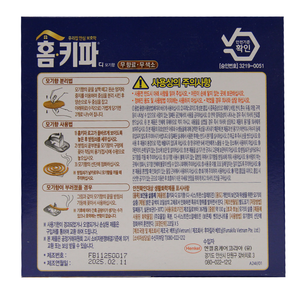 | 제품명 | 헨켈) 홈키파 디 모기향 10개 |