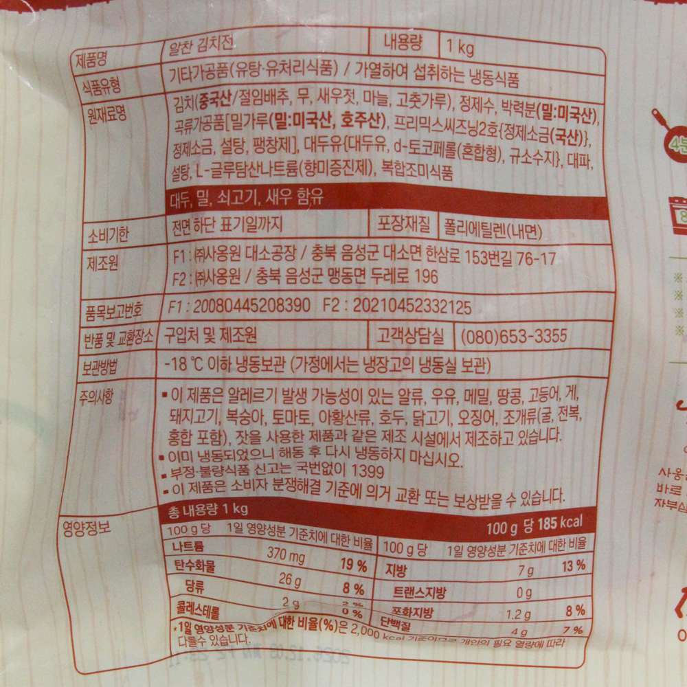 | 제품명 | 알찬김치전 1kg/사옹원 |