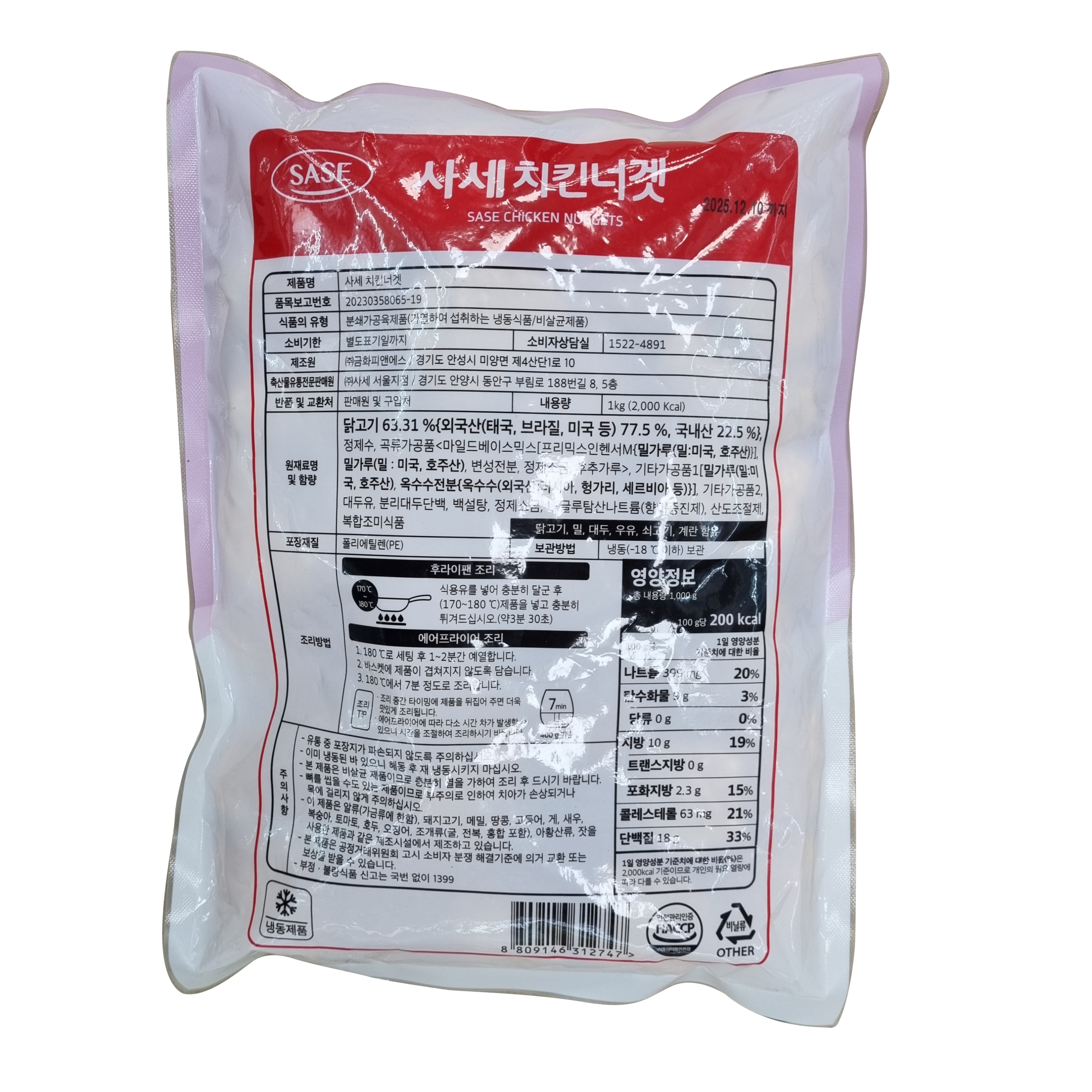 | 제품명 | 치킨너겟 1kg/사세 |