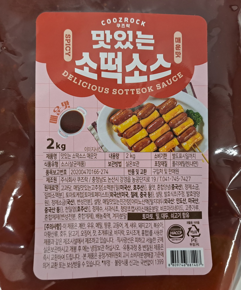 | 제품명 | 맛있는 소떡소스 2kg(매운맛)/쿠즈락 |