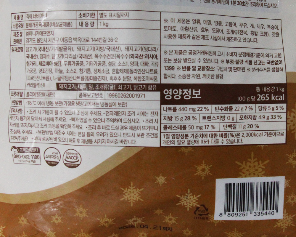 | 제품명 | 직화너비아니 1kg/마니커 |