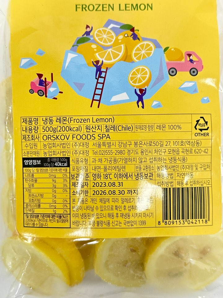 | 품목 또는 명칭 | 냉동 레몬 슬라이스·500g(칠레산)/대정 |