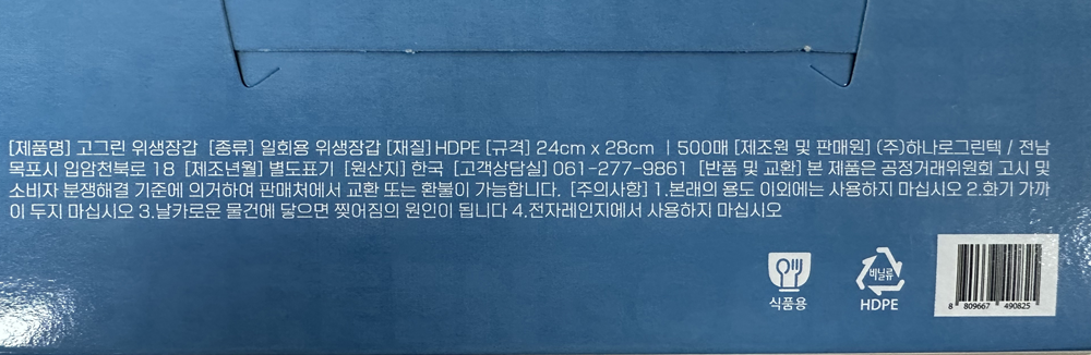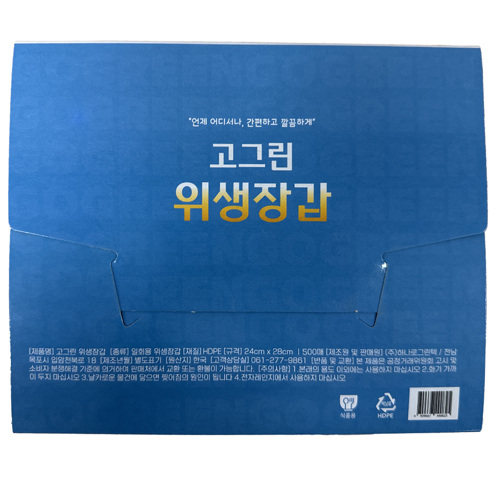 | 제품명 | 고그린 위생장갑 500매 (HDPE)/하나로그린텍 |