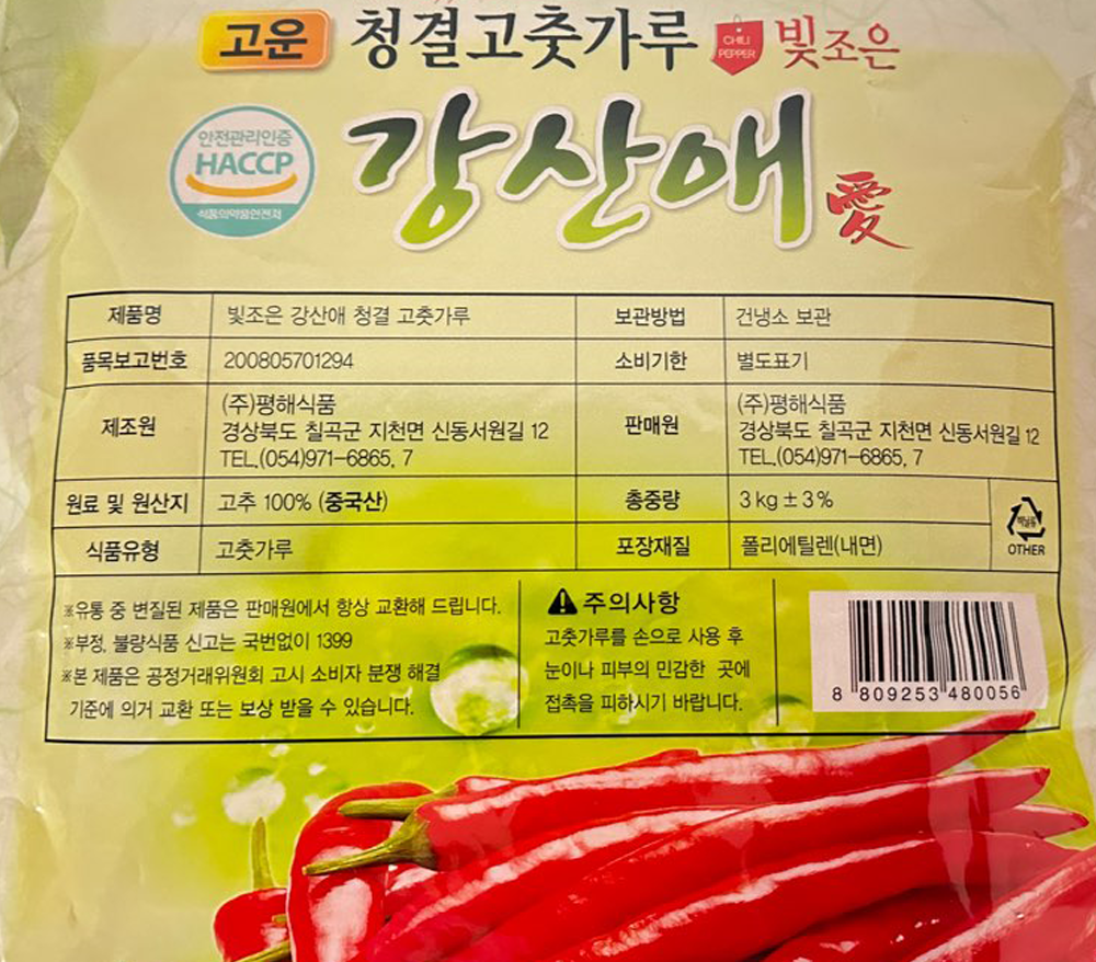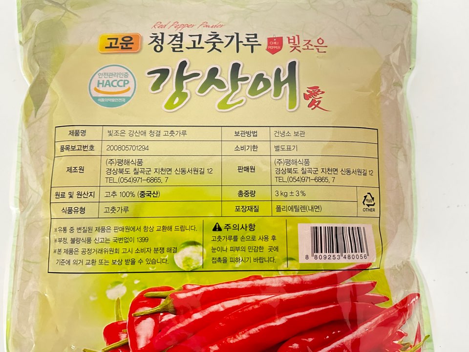 | 품목 또는 명칭 | 강산애)고운·청결고춧가루 3kg(중국산)/평해식품 |