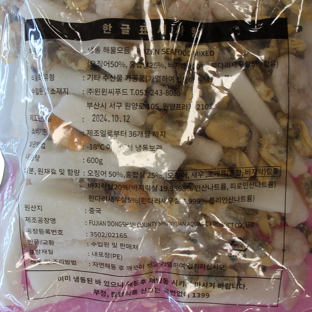| 품목 또는 명칭 | 냉동 해물모듬 600g(4종)/윈윈씨푸드 |