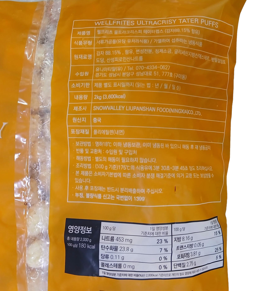 | 제품명 | 웰프리츠) 울트라크리스피 테이터펍스 2kg |