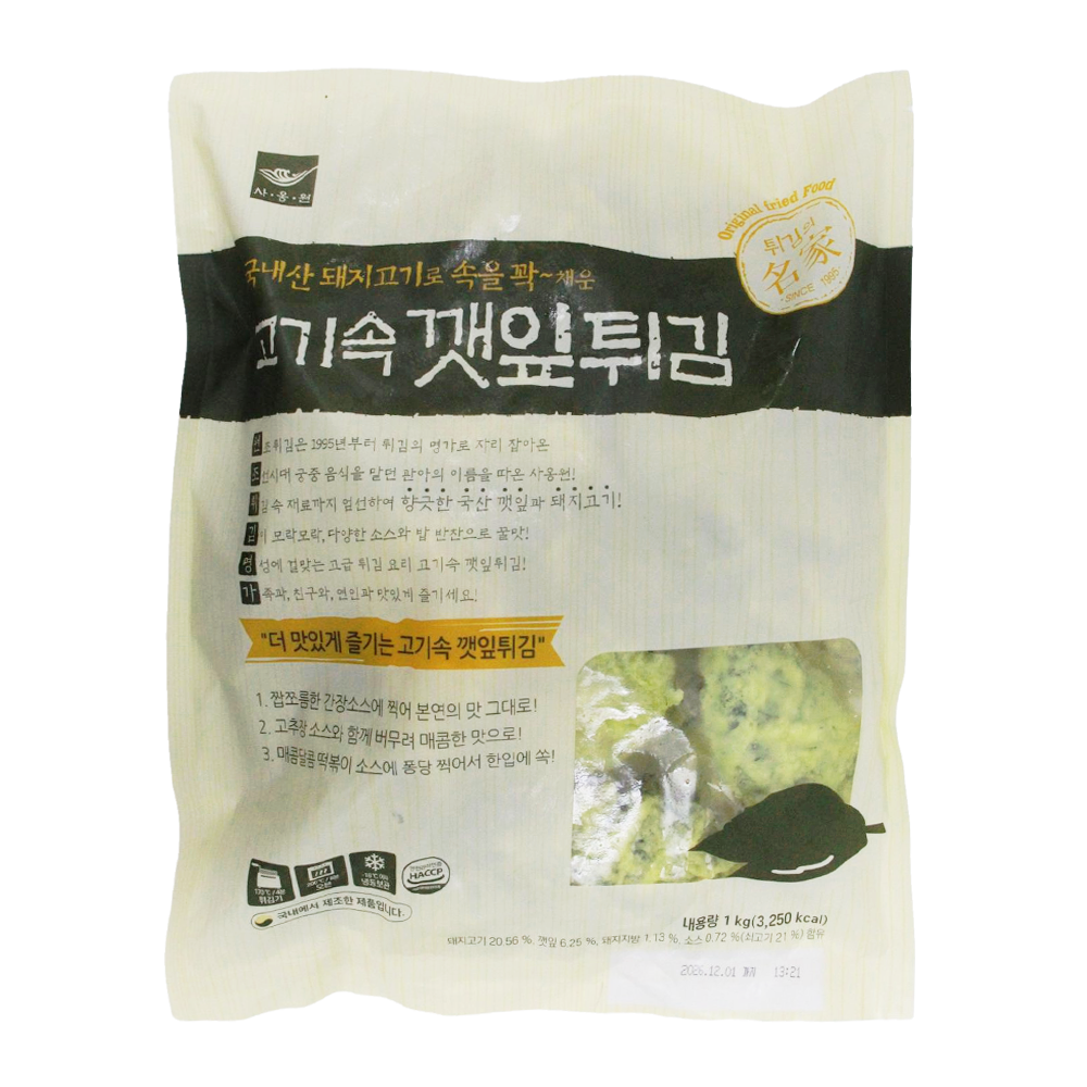 | 제품명 | 고기속깻잎튀김 1kg/사옹원 |
