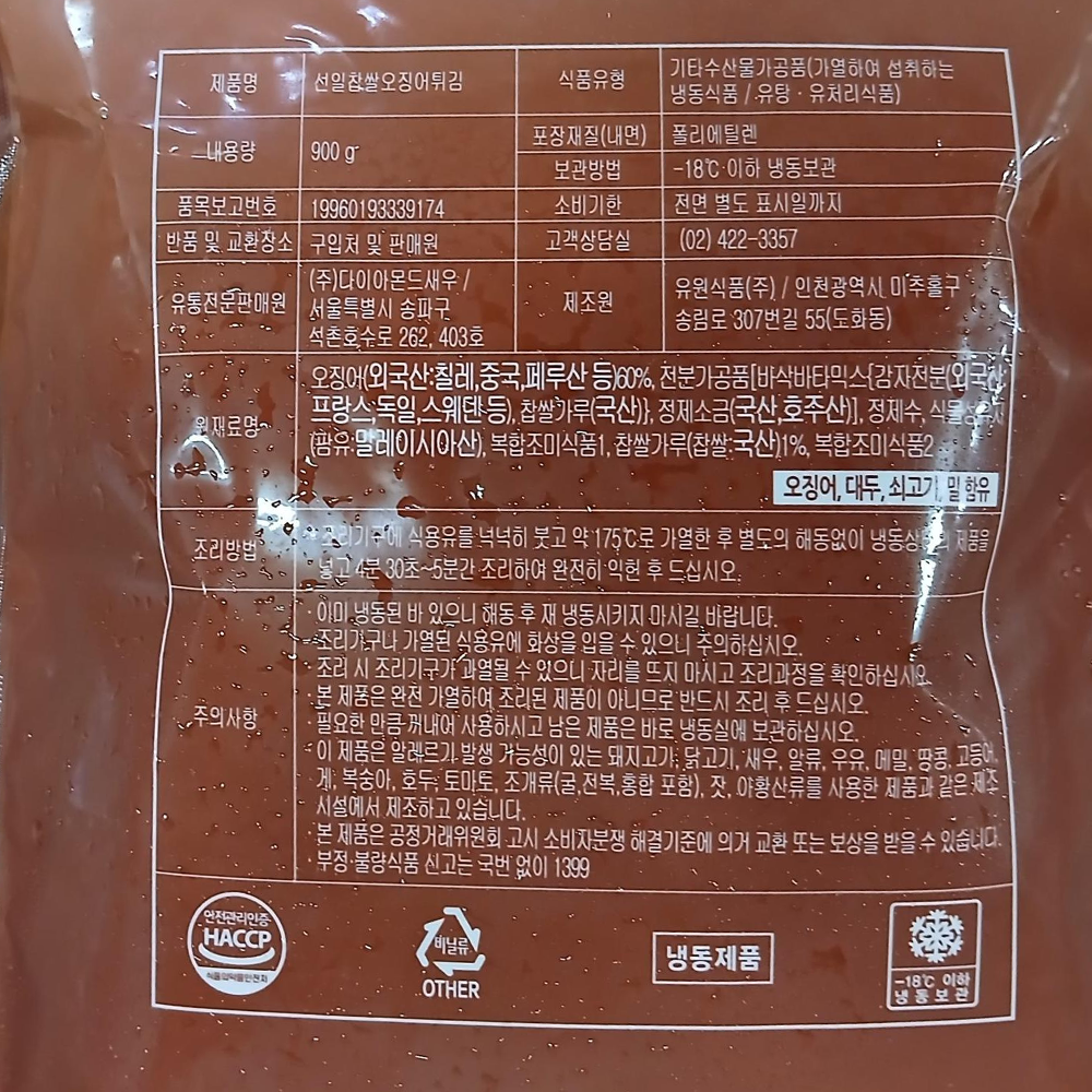 | 제품명 | 선일 찹쌀 오징어튀김 900g/다이아몬드 |