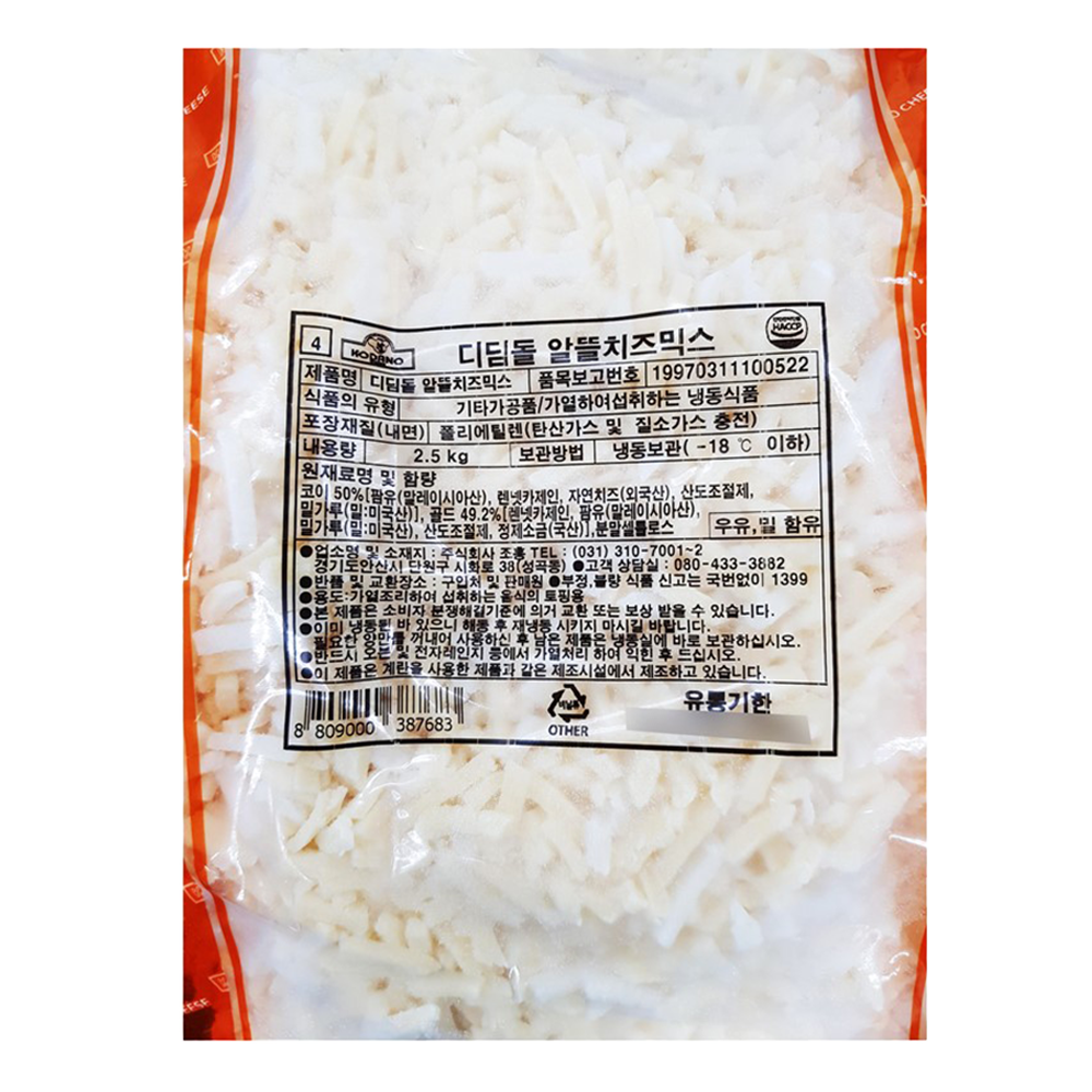 | 제품명 | 디딤돌 알뜰치즈믹스 2.5kg(자연5%)/조흥 |