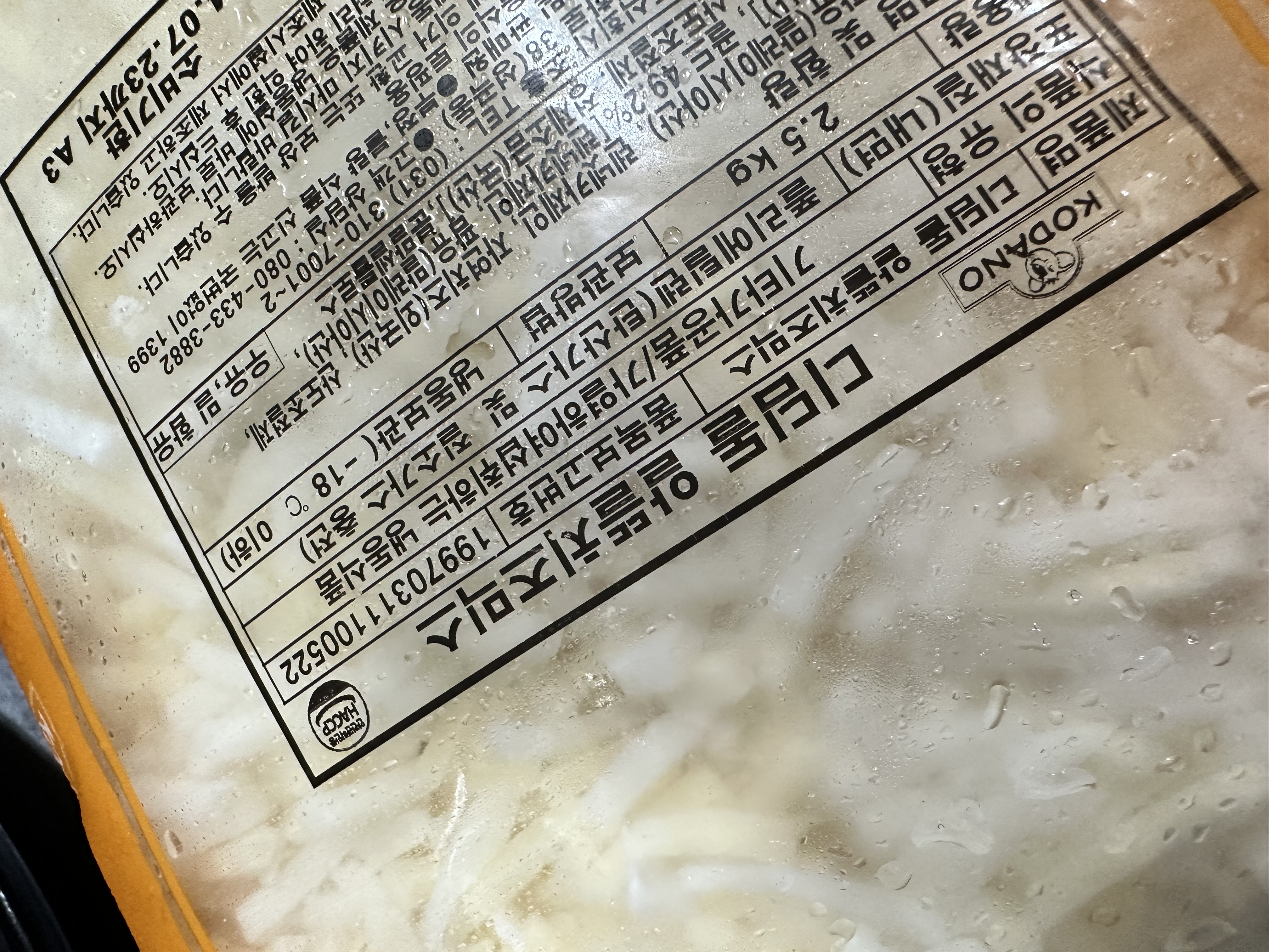 | 소비자안전을 위한 주의사항 | 보관시 주의사항:냉동 -18℃ 이하 |