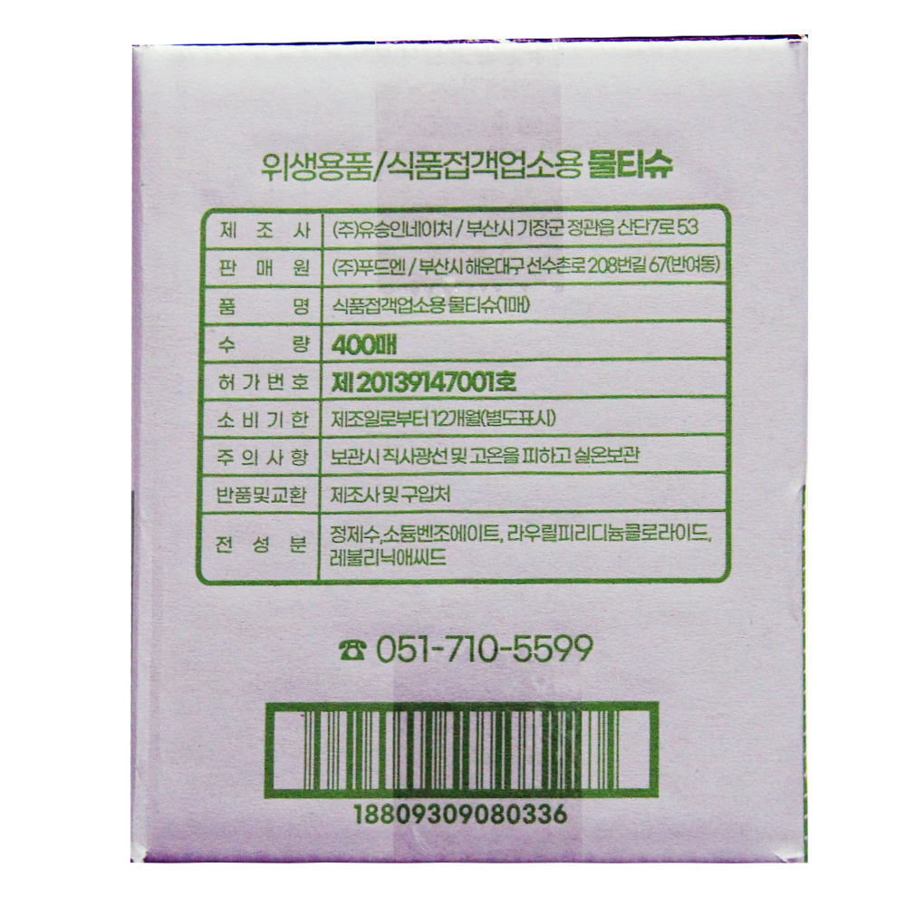 | 제품명 | 표준형 물티슈 400개입 (유한킴벌리 원단)/푸드엔 |