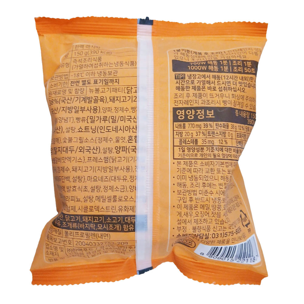 | 제품명 | 한맥마시따 150g(그릴버거)/한맥식품 |