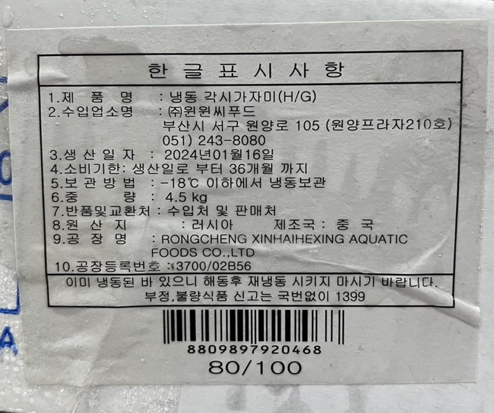 | 농수산물의 원산지 표시에 관한 법률에 따른 원산지 | 원산지 : 러시아산 |