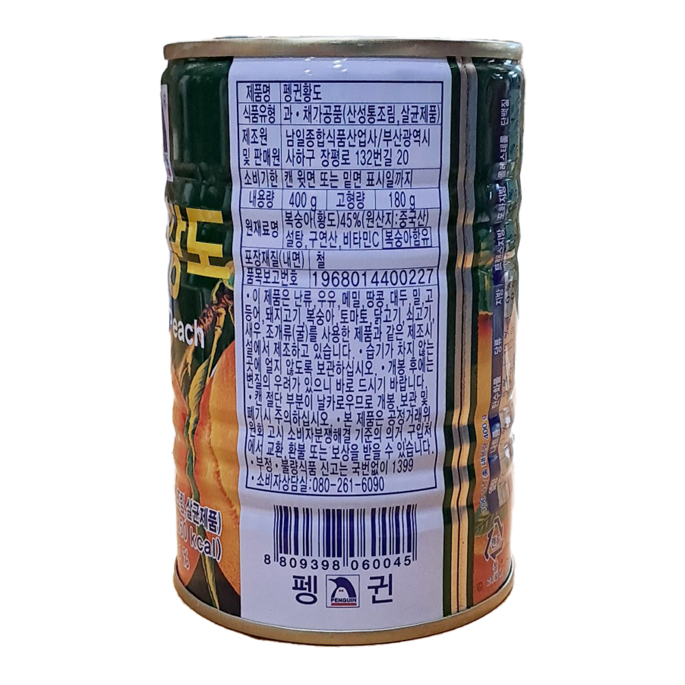 | 제품명 | 펭귄 황도캔 400g (이절)/남일종합식품 |