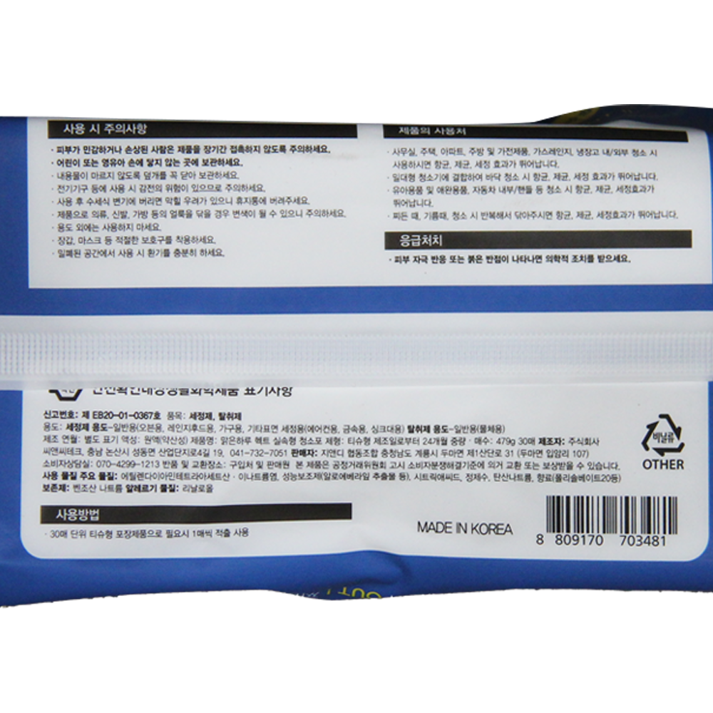 | 제품명 | Hact 물걸레 청소포 대형(실속형) 30매/지앤디 |