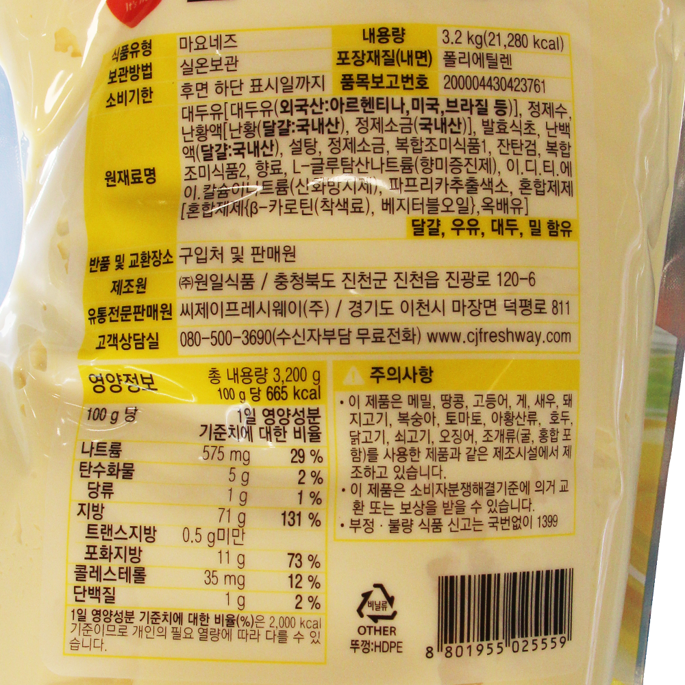 | 제품명 | 이츠웰 골드마요네즈 3.2kg /CJ프레시웨이 |